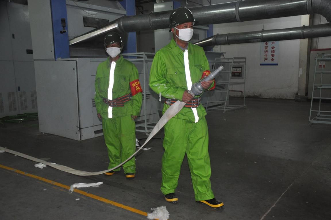 本次消防應急演練活動由崇川區大隊組織,共出動學田、觀音山、易家橋和鐘秀四個消防中隊,八輛消防車,49名消防官兵參與演練,紡織染公司微型消防站隊員、前紡車間在崗員工協同演練。演習從報警、消防車到位、割鎖開門、出水、解救被困人員、排煙、人員疏散等方面集中開展,集中展示了消防官兵應對突發火情的工作水平和我司微型消防站隊員滅火技能、一線員工有序自救的能力。
