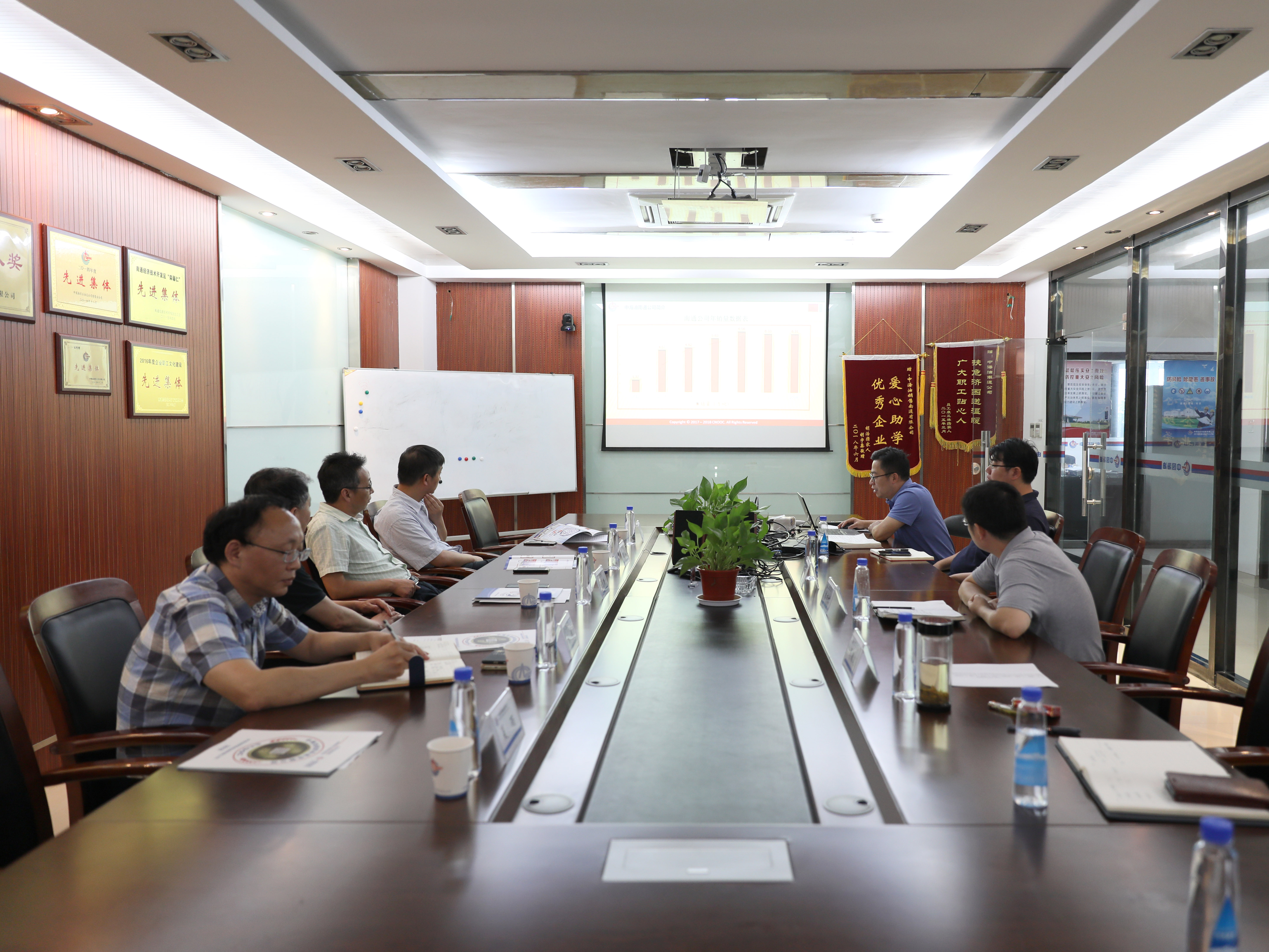 9月10日,南通經濟技術開發區管委會黨工委副書記董克新一行到中海油銷售南通有限公司進行考察、調研。中海油南通公司將公司發展情況和未來發展計劃作了詳細匯報。董克新對中海油南通公司成立以來取得的成績和對地方經濟社會發展所作貢獻表示肯定,希望公司再接再厲、更好地為開發區能源供應做好服務和保障,力爭取得更好的經營業績。