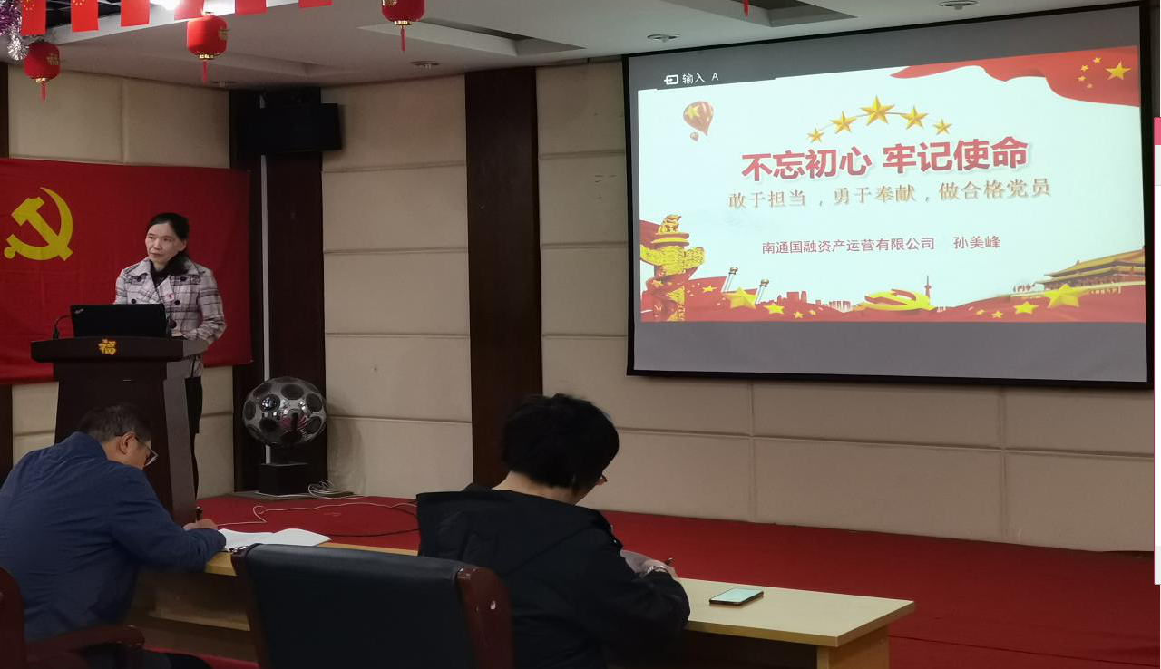 10月24日,南通國融資產運營有限公司黨委委員、工會主席孫美峰結合“不忘初心、牢記使命”主題教育給公司全體員工上了一堂題為“敢于擔當,勇于奉獻,做合格黨員”的專題黨課。