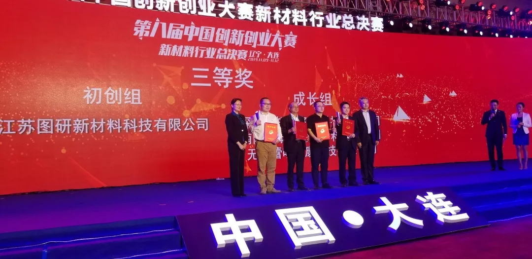 “科技創新、成就大業”。2019年第八屆中國創新創業大賽新材料行業總決賽剛剛落下帷幕,由南通產業技術研究院承辦的南通科技創業大賽暨“通創薈”創新創業大賽組委會推薦的優秀項目:江蘇圖研新材料科技有限公司獲國賽新材料初創企業組三等獎。
