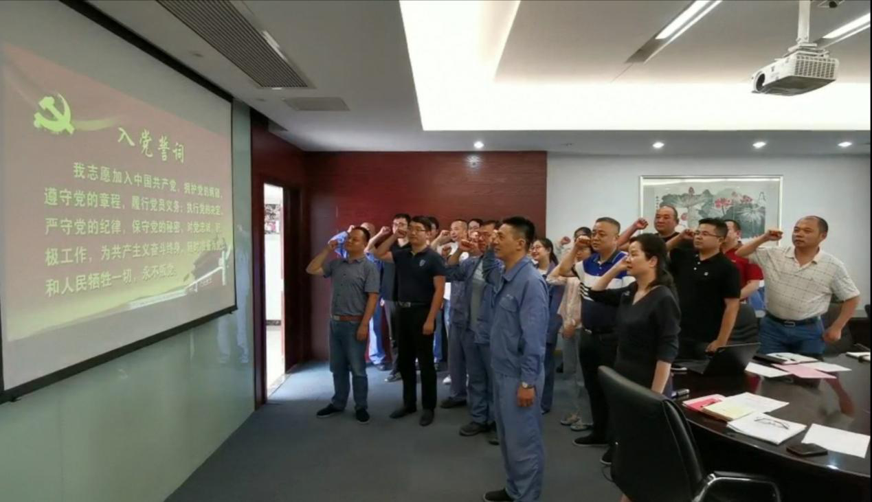 首先,黨支部書記陳梅在會上對榮獲集團“優秀黨員”、“優秀黨務工作者”稱號的方維和史彬兩位同志進行了表彰,并對他們表示衷心的祝賀。希望他們能夠戒驕戒躁、在今后的工作和生活中繼續發揚好吃苦耐勞、積極向上、敢于爭先的表率精神。同時,也希望其他黨員能夠向優秀黨員同志學習,向全國杰出的黨員先進學習,樹立務實勤勉、開拓創新的優良工作作風。 會議第二項議程中,青年委員張永鋒同志帶領全體黨員一同重溫入黨誓詞。黨員同志們目光堅定、神情肅穆,一句句錚錚的誓言,憶起的是入黨時堅定不移的初心,振奮的是使命在肩勇擔當的決心,牢守的是黨的理想信念和根本宗旨的恒心。
