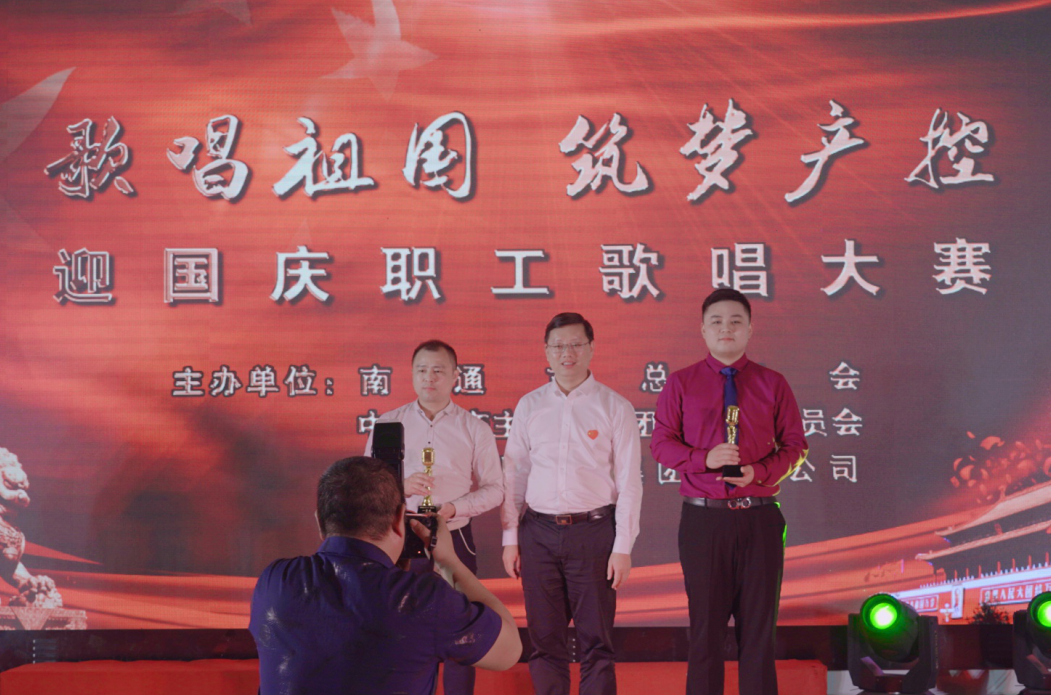 為慶祝中華人民共和國成立71周年, 9月30日下午,由南通市總工會、南通團市委、南通產業控股集團聯合主辦的“歌唱祖國、筑夢產控”迎國慶職工歌唱大賽在君庭假日酒店宴會廳成功舉辦,集團所屬各單位的參賽選手們各個激情高歌,祝福祖國,祝福產控。南通揚子碳素質檢處王偉、機動車間羅謙參加了本次比賽。王偉以一曲《我的中國我愛你》榮獲比賽一等獎、羅謙的《又見山里紅》榮獲本次比賽鼓勵獎。