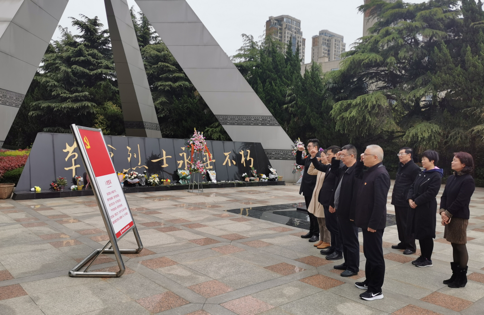 在紀念碑前,全體黨員肅立默哀,為革命烈士敬獻花籃,向革命烈士紀念碑行三鞠躬禮,表達了對革命先烈的崇高敬意,并重溫了入黨誓詞。
