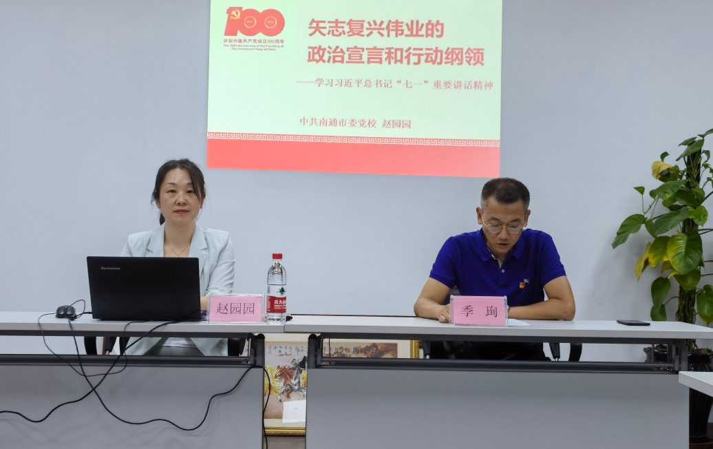 趙園園以《矢志復興偉業的政治宣言和行動綱領》為題,深入闡述“七一”重要講話的重大意義和重要地位,緊緊圍繞“一個鮮明主題即實現中華民族偉大復興,一條清晰主線即繼承發揚偉大建黨精神,九個必須即寶貴經驗和根本要求”,全面解讀“七一”重要講話的豐富內涵和核心要義,輔以生動鮮活的事例,回顧黨的百年光輝歷程,詮釋偉大建黨精神,引領廣大干部職工切實把思想和行動統一到學習貫徹“七一”重要講話精神上來。 季珣就持續深入貫徹落實習近平總書記“七一”重要講話精神提了意見要求。一是要在學深悟透上用真心、下真功,進一步堅定理想信念、履職擔當盡責;二是要在融會貫通上見真章、用真力,緊貼企業中心工作,把學習“七一”重要講話精神同強化市場拓展、提升技術水平、優化服務質量、增強盈利能力等結合起來;三是要在推進轉型發展上出真招、見真效,把學習成果轉化為推動企業發展的強大動力,轉化為奮進現代化、跑贏新賽程的有力行動。
