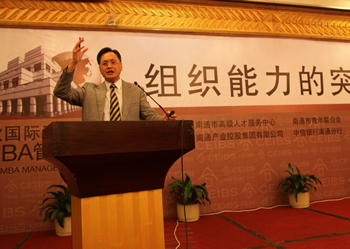 9月7日下午,中歐國際工商學院高層管理論壇在通舉行,400多位南通商界高管到場,聆聽中歐國際工商學院副教務長、飛利浦人力資源管理教席教授楊國安博士的精彩演講——《組織能力的突破》。南通市高級人才服務中心及南通產業控股集團有限公司等六家單位參與合辦此次論壇。 在 短短一小時的主題演講中,楊國安教授談到“企業基層搞作業、中層做管理、高層謀經營。所謂經營者,一則制定戰略規劃,二則培養組織能力,二者缺一不可”。 他從確立員工能力,塑造員工思維,改進員工治理三方面闡述如何建立企業所需的組織能力;對處于不同發展周期的企業給出相應建議,指出通過必要的組織變革配 合戰略轉型,提高團隊整體戰斗力的重要性。 作為世界華人杰出管理大師之一、國際公認的人力資源管理權威,楊國安教授取得的成果不僅限于理論層面,他還同時擔任多家知名公司顧問,成功幫助宏基、騰訊等 公司實現人力資源、組織能力的戰略轉型。理論的高屋建瓴和實踐的腳踏實地,使得楊教授的理念簡明實用,具有很強的指導性和操作性。多年的研究精華凝聚在一 個下午,給與會高層職業經理人提供了一個難得的學習機會。通過楊教授的演講及與經理人的互動交流,大家對組織能力的概念和對企業發展的重要性都有了更深的 認識和理解。 集團領導、本部全體員工和投資企業高管參加了本次論壇。