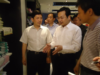 五月十六日上午,南通市委副書記、市長(zhǎng)張國華到如東調(diào)研的第一站就來到大東公司。張市長(zhǎng)在大東產(chǎn)品陳列室看到琳瑯滿目的高品質(zhì)產(chǎn)品后,頻頻點(diǎn)頭稱贊。 大東總經(jīng)理高軍介紹說,大東公司堅(jiān)持走“新產(chǎn)品、新技術(shù)、新材料”之路,先人一步進(jìn)行了企業(yè)轉(zhuǎn)型,在行業(yè)普遍不景氣的情況下發(fā)展質(zhì)態(tài)良好,一至四月份大東的利稅和員工工資同比均有較大幅度增長(zhǎng)。公司品牌戰(zhàn)略取得明顯成果,最近DD牌商標(biāo)被國家工商總局認(rèn)定為中國馳名商標(biāo)。公司機(jī)臺(tái)全部開足,訂單已排至8月份。當(dāng)張市長(zhǎng)了解到這些情況后高興地說,大東公司作為一家傳統(tǒng)企業(yè),通過技術(shù)創(chuàng)新、產(chǎn)品創(chuàng)新、新材料應(yīng)用、品牌運(yùn)營,成功實(shí)現(xiàn)了企業(yè)的轉(zhuǎn)型升級(jí),為南通市傳統(tǒng)企業(yè)的轉(zhuǎn)型升級(jí)樹立了樣板。 市商務(wù)局局長(zhǎng)顧淑英、縣長(zhǎng)潘建華、日本國株式會(huì)社英瑞會(huì)長(zhǎng)吳文貴、副會(huì)長(zhǎng)吳幸子女士等陪同張市長(zhǎng)考察。